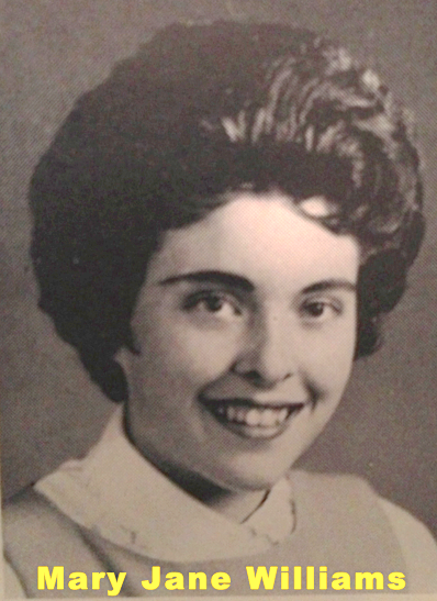 MARY JANE WILLIAMS (PETERSON) moved from Denver back to Cedar about two years ago. She lives on the Black Hill (Beacon Drive). Mary Jane bought a Walker for her birthday, but she hasn't needed it yet. She doesn't remember things well (like many of us), so her son said, "Mother get a notebook and write things down!" So she did. Then, she lost the notebook! She has solved the problem, though. She writes her appointments on sticky notes and sticks them on the floor. Every time she walks over them, they remind her of her appointments.